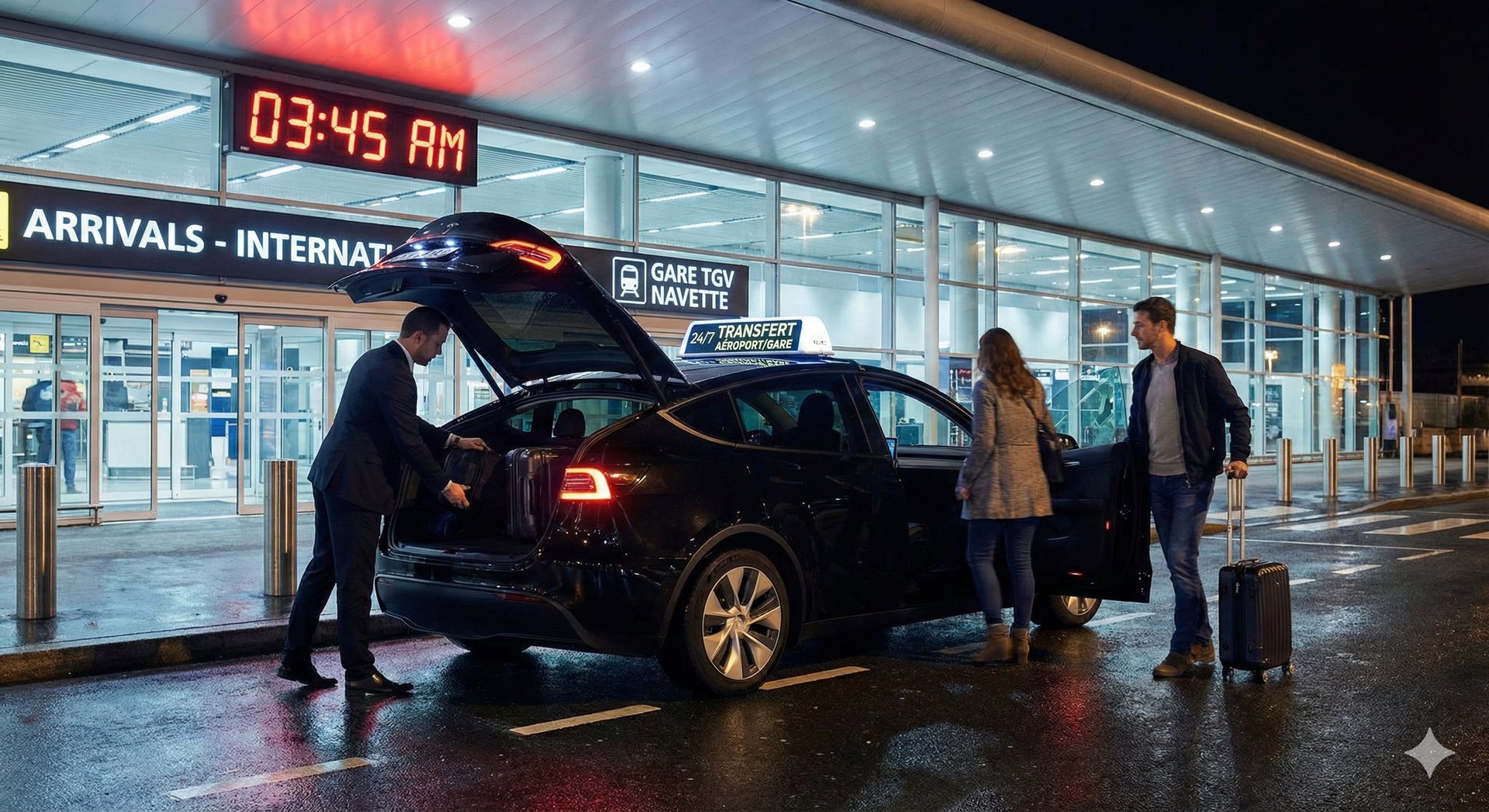 Premier vol à l'aube, dernier TGV de la nuit ou retard imprévu : nous assurons vos liaisons sans interruption, week-ends et jours fériés inclus.