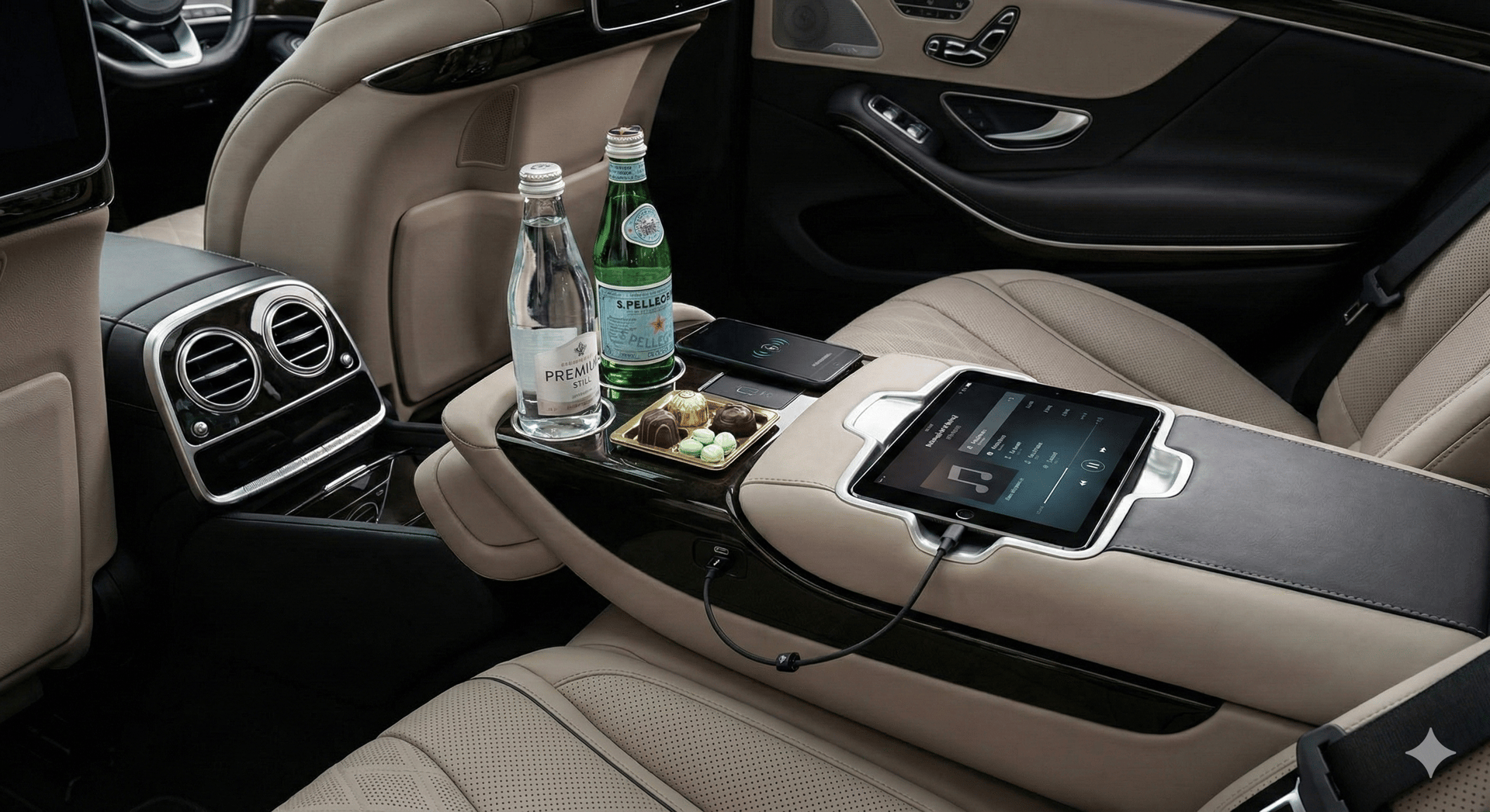 Voyagez exclusivement en Mercedes Classe V, Classe S ou Tesla modèle Y. Des véhicules immaculés, vitres teintées, intérieur cuir et finitions haut de gamme.